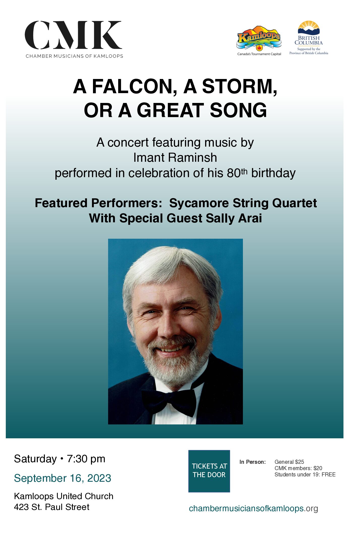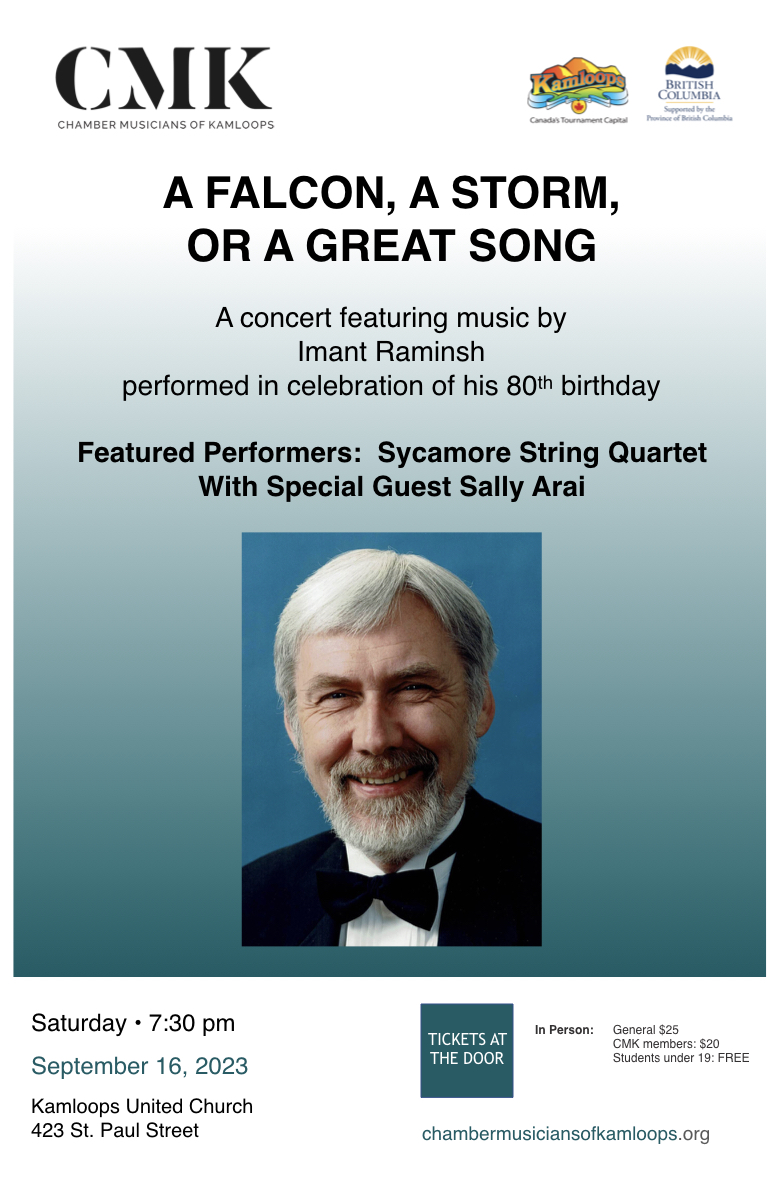 This concert features two significant chamber compositions by the renowned Latvian-born, Vernon-based, Canadian composer – Imant Raminsh in celebration of his 80th birthday.