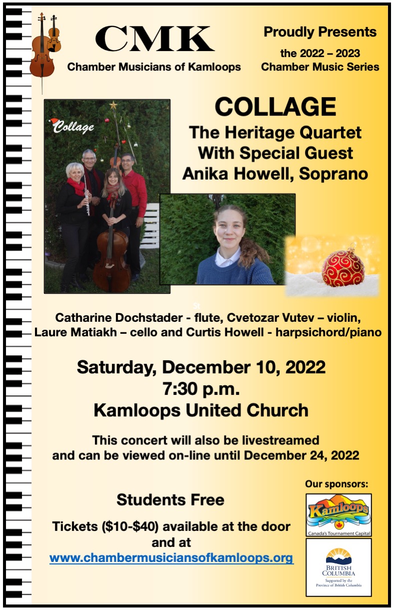 Featured Performers: Heritage Quartet - Catharine Dochstader, flute Cvetozar Vutev, violin Laure Matiakh, cello Curtis Howell, piano and harpsichord, and guest singer Anika Howell, soprano.
