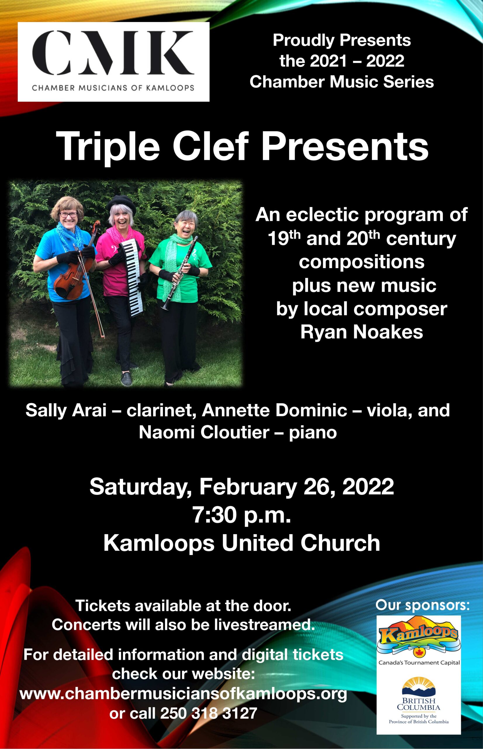 Enjoy an eclectic program featuring 19th and 20th century composers such as Schumann, Mozetich and Hollaender and a newly commissioned work for the group by Kamloops composer, Ryan Noakes.